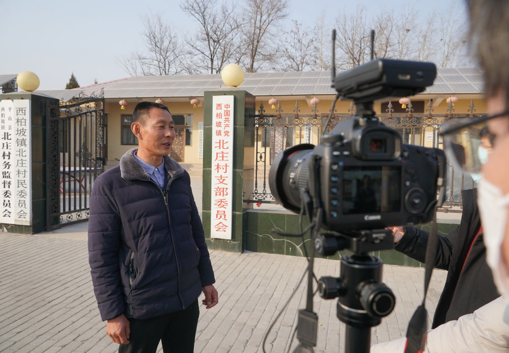 2月9日,平山縣西柏坡鎮(zhèn)北莊村黨支部書記封紅卷在接受媒體采訪。新華社記者 楊世堯 攝