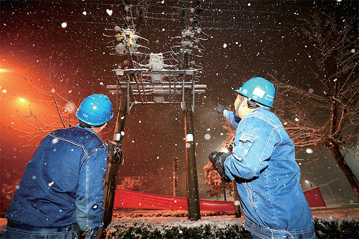 2月24日晚上,大雪紛飛,濟(jì)源郊區(qū)供電中心附近,工作人員趙國平和李東宣手持設(shè)備認(rèn)真地對轄區(qū)配電網(wǎng)線路進(jìn)行逐一巡查。當(dāng)晚,他們還加大巡視檢查力度,尤其是對轄區(qū)重要設(shè)備、重點(diǎn)區(qū)域和重點(diǎn)線路實(shí)行特訓(xùn),利用紅外測溫等設(shè)備加強(qiáng)電網(wǎng)運(yùn)行狀態(tài)診斷,針對薄弱環(huán)節(jié)及時(shí)制定應(yīng)急措施,從而確保線路設(shè)備安全可靠運(yùn)行。