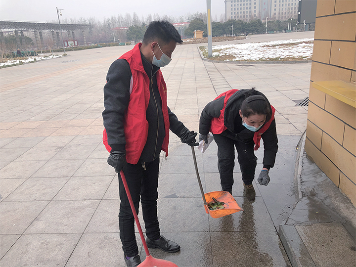 2月26日,元宵節(jié)前夕,一場春雪悄然而至。盡管天氣不好,丫頭愛心公益組織的志愿者還是如期來到世紀(jì)廣場撿拾垃圾。