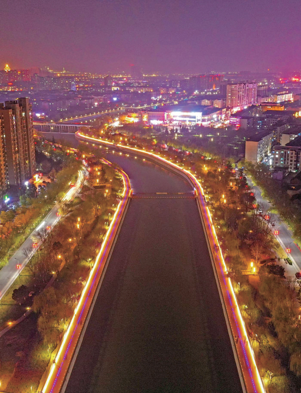 華燈初上,記者用無人機航拍濟(jì)源夜景,縱橫交錯、流光溢彩。