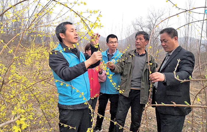 3月5日,農(nóng)科院技術(shù)人員在承留鎮(zhèn)玉皇廟村查看連翹生長情況,并指導(dǎo)種植戶做好連翹春季管理工作。