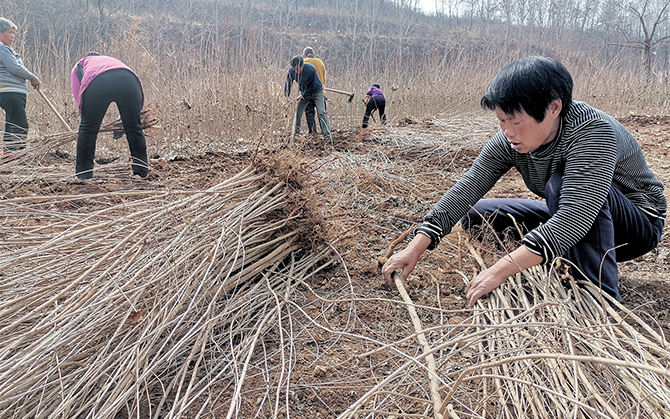3月5日,春日暖陽(yáng)普照大地,走進(jìn)王屋鎮(zhèn)原莊村的苗木繁育基地,記者看到,村民們正在五角楓、側(cè)柏種植片區(qū)里起苗、挑揀、剪枝、扎捆、裝袋……一派繁忙景象。