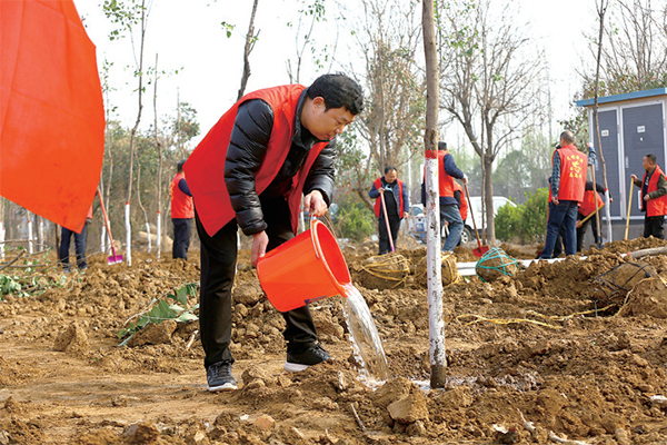 上午8時(shí)許,植樹(shù)現(xiàn)場(chǎng)紅旗飄飄,人頭攢動(dòng)。大家摩拳擦掌,紛紛投入到義務(wù)植樹(shù)的活動(dòng)中?!敖裉?,我們住建系統(tǒng)組織了近400人參加義務(wù)植樹(shù)活動(dòng),計(jì)劃栽植女貞、國(guó)槐等品種1300余棵。我們將利用春季有利時(shí)機(jī),做好春季綠化工作?!睗?jì)源市城投園林綠化有限公司副經(jīng)理樊超告訴記者。