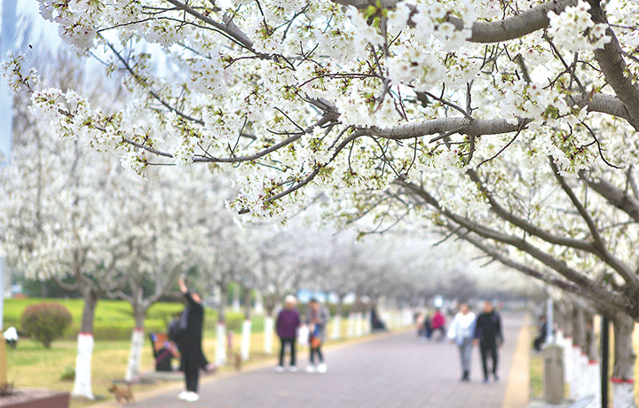 近日,世紀(jì)廣場(chǎng)櫻花大道上的櫻花盛開,花香四溢,吸引了不少市民前來觀賞。記者 劉培琳 攝