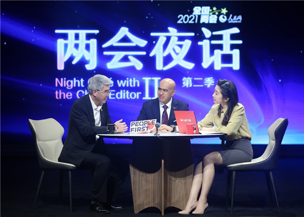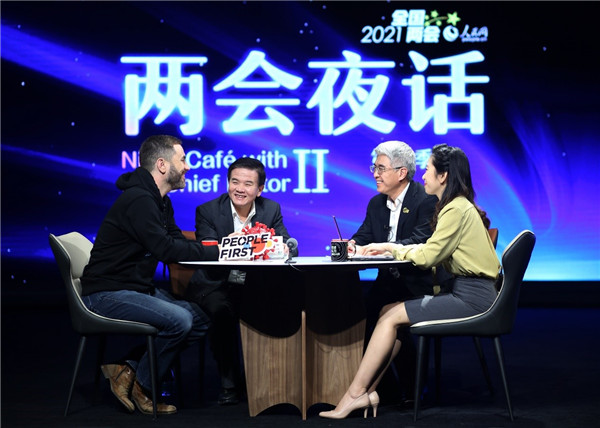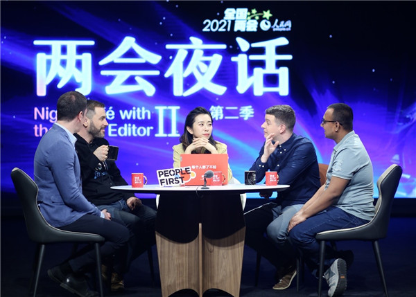 《兩會夜話》錄制現(xiàn)場。人民網(wǎng) 袁悅 攝