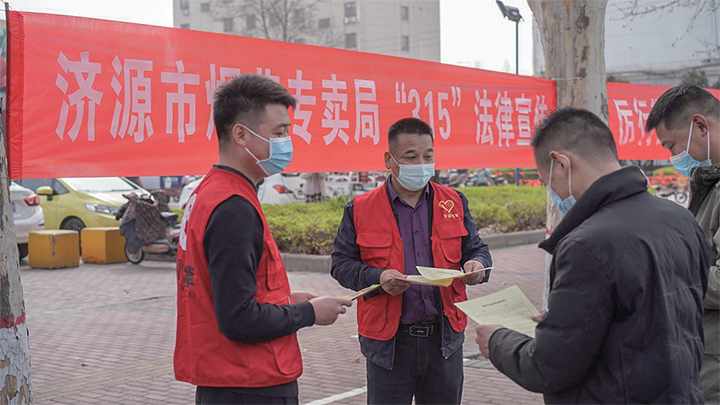 此外,當(dāng)天濟(jì)源煙草專賣局還組織工作人員到沁園路丹尼斯門前進(jìn)行線下“3·15”卷煙打假法律宣傳活動(dòng)。現(xiàn)場(chǎng)設(shè)置了法律宣傳及真假煙鑒別咨詢臺(tái)。工作人員通過(guò)展示法律法規(guī)宣傳版面,發(fā)放真假卷煙鑒別知識(shí)單、卷煙打假戰(zhàn)果宣傳冊(cè)等形式向過(guò)往群眾宣傳《煙草專賣法》、12313舉報(bào)電話、真假卷煙鑒別方法等相關(guān)知識(shí),營(yíng)造出濃厚的“全民打假”氛圍。