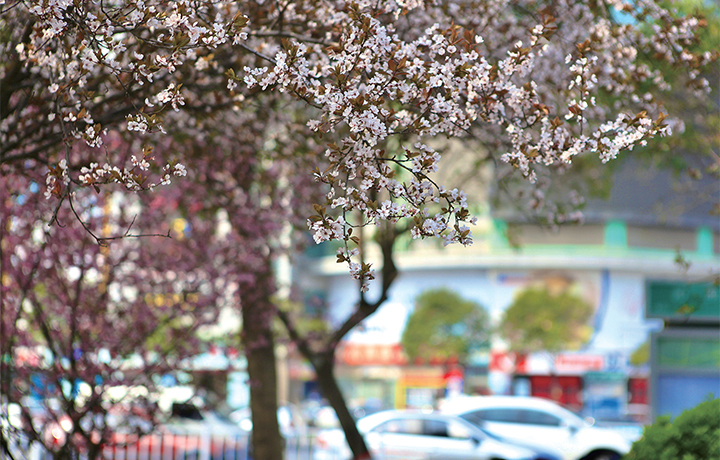 春分時節(jié),春意更濃。沁園路上的景觀樹紛紛開花,形成一道亮麗的風(fēng)景線。記者 劉培琳 攝