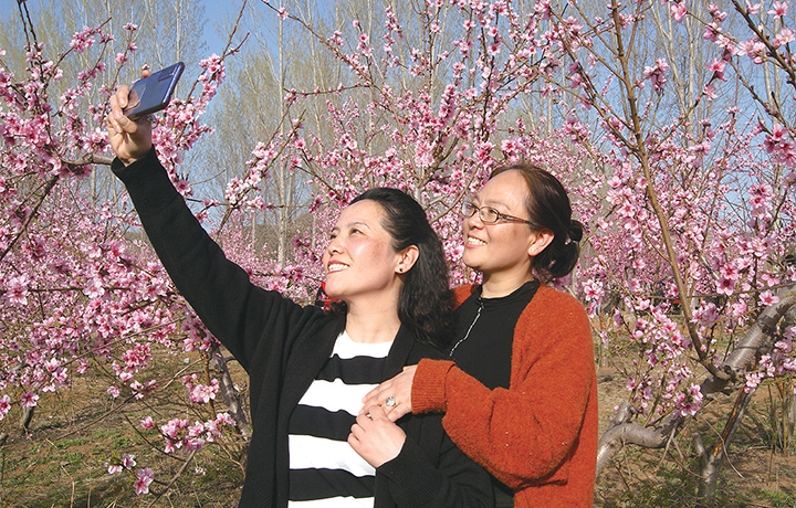 3月23日,游客在思禮鎮(zhèn)澗北村的桃花叢中拍照。