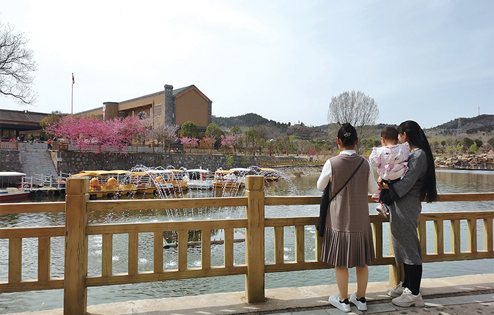 陽春三月,承留鎮(zhèn)花石村青山碧水、桃紅柳綠,呈現(xiàn)一幅美麗鄉(xiāng)村的生動畫卷。不少游客前來踏青。記者 王虎軍 攝
