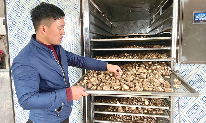 3月29日,王屋鎮(zhèn)林山村香菇扶貧基地的菇農(nóng)正在對香菇進行后期烘干。香菇保鮮有一定局限性,該基地購置香菇烘干設(shè)備,做香菇初加工,進一步延伸產(chǎn)業(yè)鏈,拓寬農(nóng)民增收渠道。記者 史方方 攝