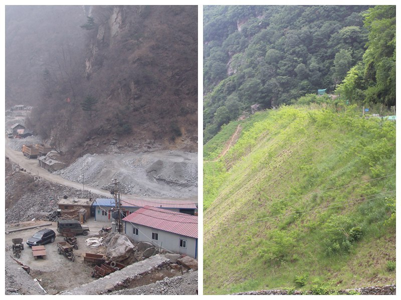 文峪金礦1515坑口整治前(左圖)和整治后(右圖)對(duì)比圖。