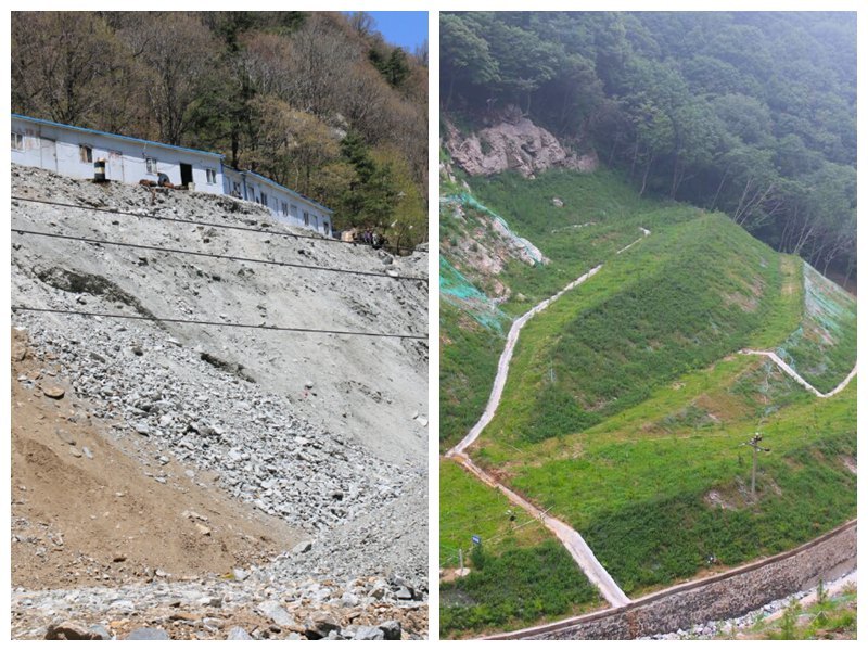 老鴉岔1770坑口整治前(左圖)和整治后(右圖)對(duì)比圖。