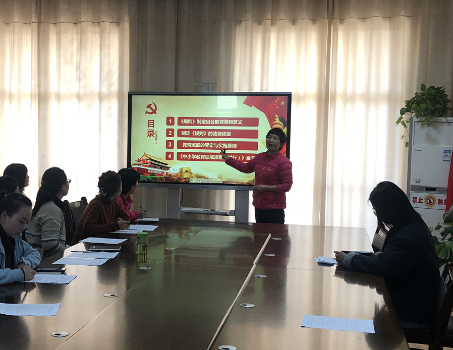 在師德師風(fēng)專題培訓(xùn)會中,園長李迎霞帶領(lǐng)天壇路幼兒園全體教師深入學(xué)習(xí)了《中小學(xué)教育懲戒規(guī)則(試行)》。李園長從出臺的背景與意義、制定的法律依據(jù)等四個方面進(jìn)行了詳細(xì)解讀,強(qiáng)調(diào)教師要將關(guān)愛與懲戒相輔相成,把握好一定的度,守住師德行為“紅線”,同時(shí)在對待幼兒教育問題上一和家長達(dá)成一致,學(xué)會有效溝通,做到事半功倍。