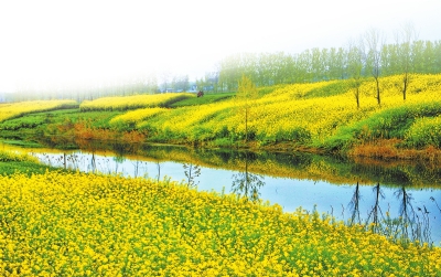 4月6日,橫貫柘城縣全境的太平溝水域,兩岸金燦燦的油菜花迎風綻放,成為當?shù)厝罕娦蓍e游玩的好去處。張子斌攝