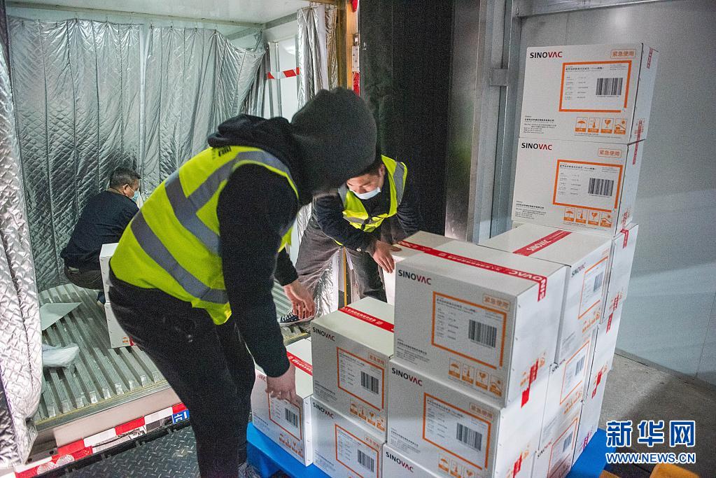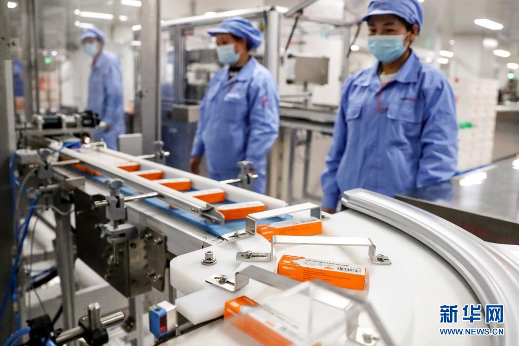 1月6日,科興中維的工作人員在檢查新冠病毒滅活疫苗全自動(dòng)包裝線運(yùn)行情況。新華社記者 盧燁 攝