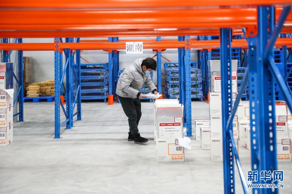 1月6日,科興中維的工作人員在新冠病毒滅活疫苗成品冷庫(kù)內(nèi)按單核對(duì)產(chǎn)品信息準(zhǔn)備發(fā)貨。新華社記者 張玉薇 攝