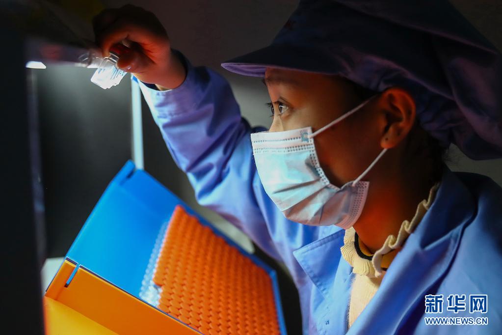1月6日,科興中維的工作人員在包裝車間對(duì)西林瓶包裝新冠病毒滅活疫苗進(jìn)行人工抽檢。新華社記者 張玉薇 攝