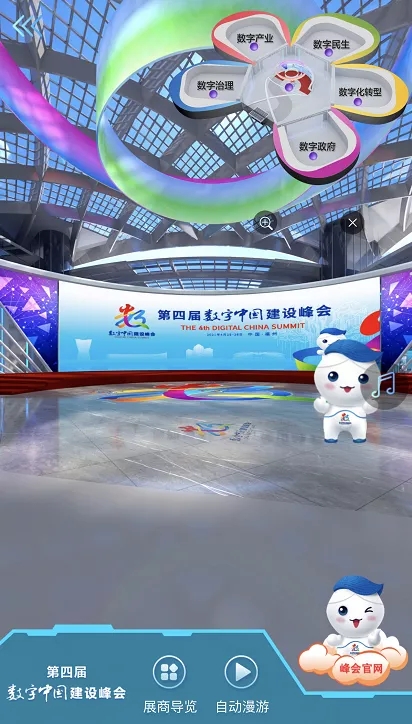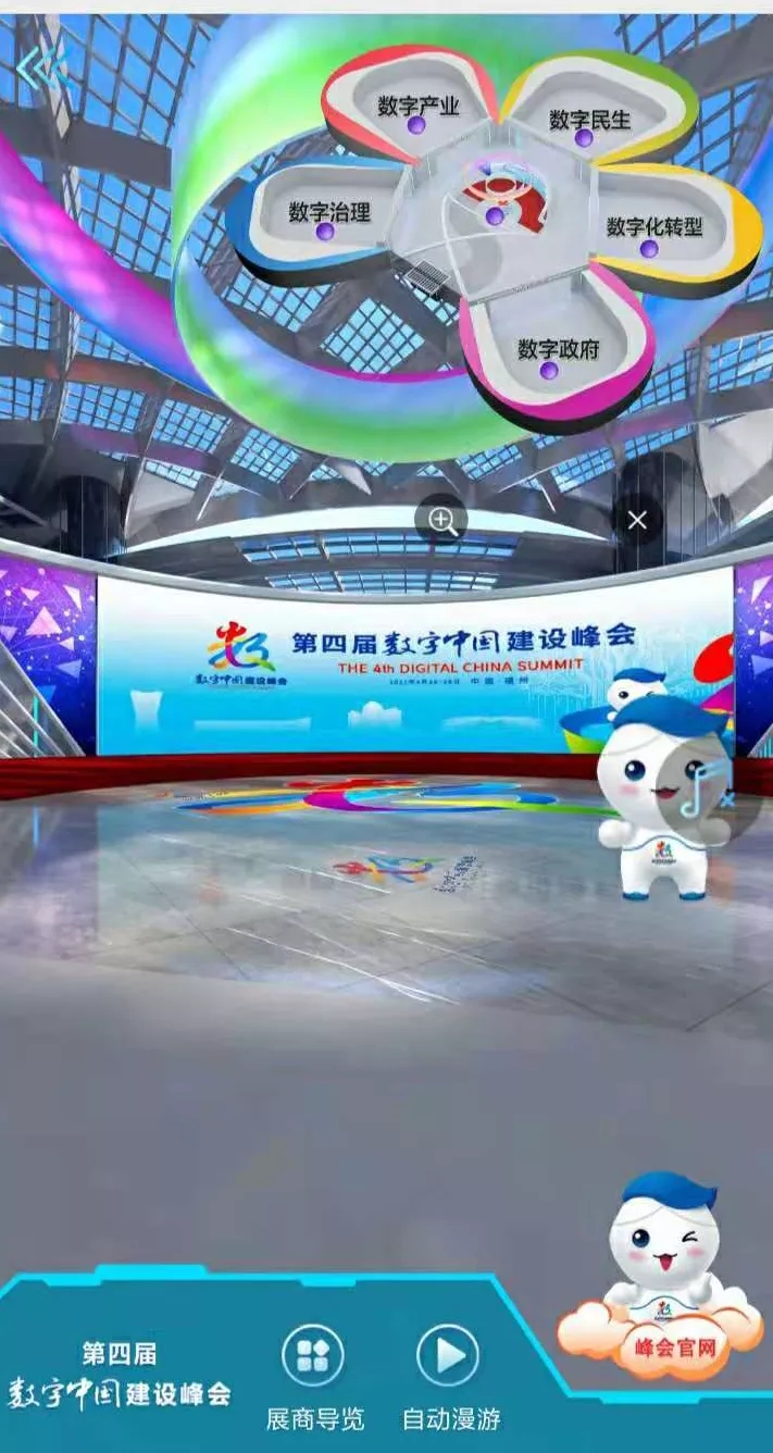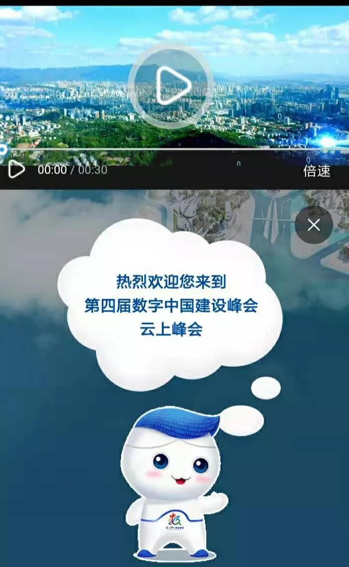 首先,打開第四屆數(shù)字中國建設(shè)峰會云上峰會官網(wǎng),進入首頁,在這里你可以看到熱情的數(shù)娃小可愛,還有一個超級炫酷的宣傳視頻。