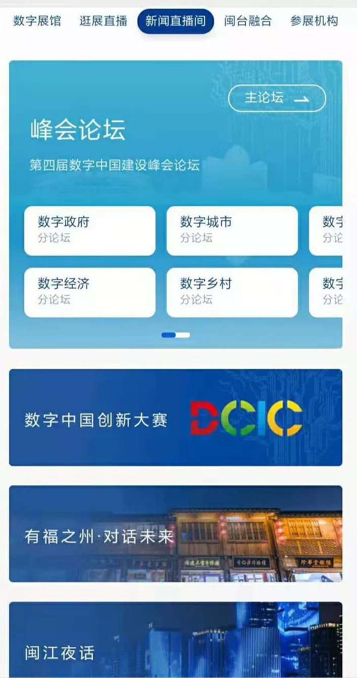 這里面有各個分論壇的直播,還有“數(shù)字中國創(chuàng)新大賽”“有福之州·對話未來”以及“閩江夜話”等三大活動的介紹。