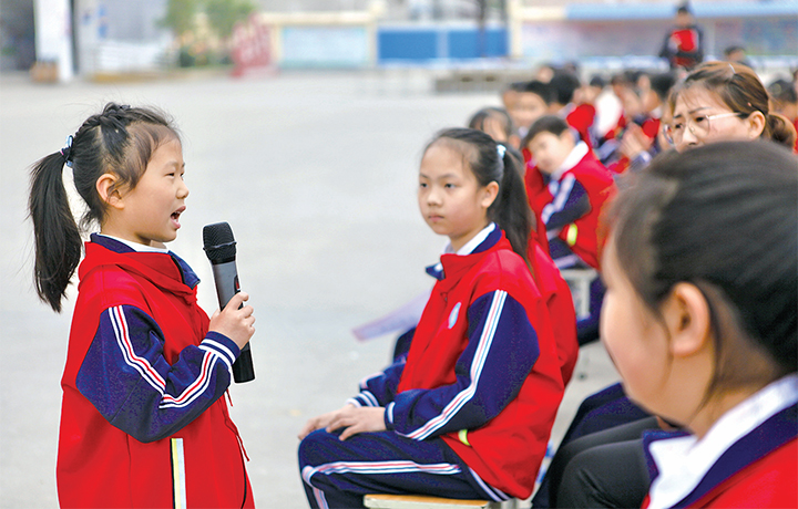 4月23日,文昌路小學(xué)學(xué)生正在誦讀。 為激發(fā)學(xué)生的讀書熱情,營造濃厚的讀書氛圍,文昌路小學(xué)舉辦“讀書立學(xué) 童心向黨”朗讀者活動?;顒油ㄟ^學(xué)生誦讀、讀書小明星頒獎、薦書采訪等環(huán)節(jié),讓學(xué)生產(chǎn)生閱讀興趣,培養(yǎng)學(xué)生良好的讀書習(xí)慣,在讀書中快樂成長。劉培琳 段金環(huán) 攝