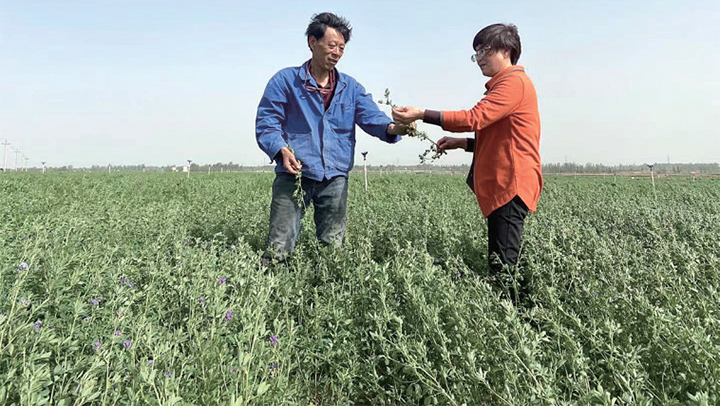 苜蓿每年可以收割四次,農業(yè)技術人員正在給種植戶指導苜蓿后期管理。