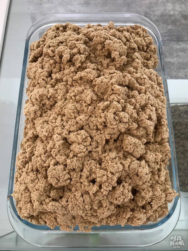 這是車間里30:1的艾絨,表示30斤艾葉出1斤艾絨,前面的數(shù)字越大,制成的艾條純度越高。(總臺央視記者 石偉明 拍攝)