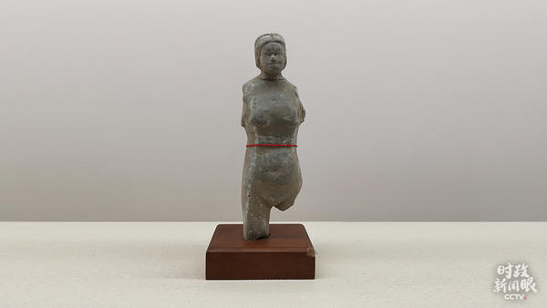 東漢針灸女陶人。身高24厘米,胸寬7厘米。陶人造型質(zhì)樸,渾身遍布排列成行的針灸穴位,具有極高的學(xué)術(shù)價值。(總臺央視記者 馬超 拍攝)