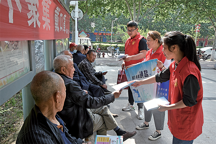 工作人員在向群眾發(fā)放宣傳資料。