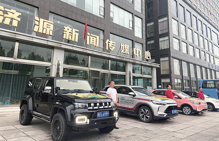 濟(jì)源新聞傳媒中心全媒體記者乘坐北汽志愿服務(wù)車前往比賽現(xiàn)場