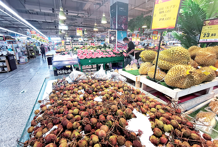 一家超市貨架上擺放的荔枝