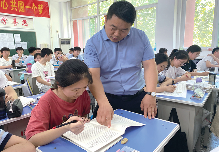 濟源第一中學的張林沖不僅是化學教師,還擔任高三(30)班的班主任。在學生考前的最后階段,每天早上5點到晚上10點,他都在教室里忙碌?!搬槍记安恢氲膶W生,我主要帶著他們查看每次考試的錯題,讓他們帶著問題回歸課本;對于過于緊張焦慮的學生,我重點幫助他們減壓并給予鼓勵和支持,希望他們平穩(wěn)、冷靜地參加高考,考取理想學校。”