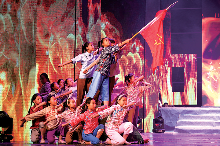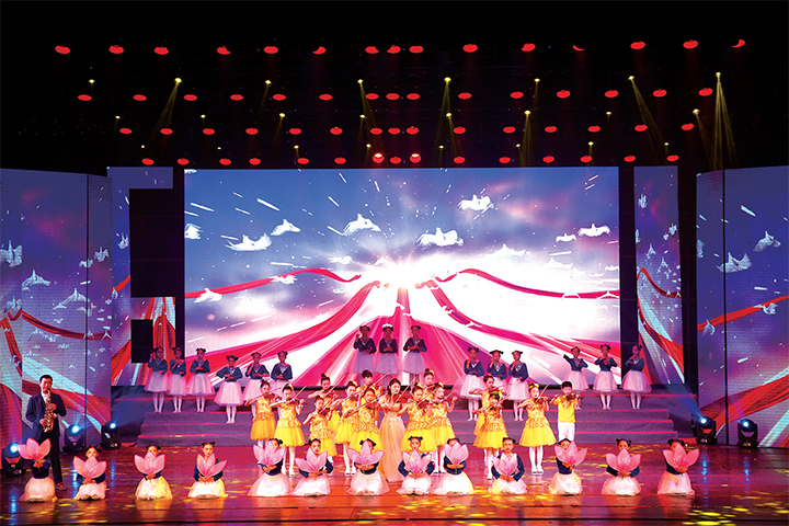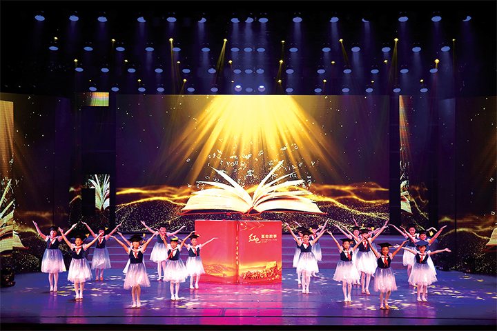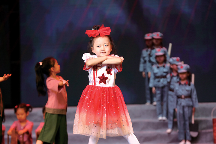 小朋友們和老師們通過音、舞、詩、樂等藝術形式,表演了歌舞、器樂演奏、情景劇、戲曲等文藝節(jié)目,詮釋了對祖國大好山河的熱愛,抒發(fā)了迎接中國共產黨成立100周年的喜悅之情,展現(xiàn)了不同時代的中華兒女有著同樣頑強不屈的精神和錚錚鐵骨的氣概,昭示著中華民族不斷攻堅克難、走向復興的輝煌前景,傳遞著“永遠跟黨走”的信心和決心,號召廣大兒童向黨致敬,奮發(fā)圖強,努力成長為能夠擔當民族復興大任的時代新人。圖為演出精彩瞬間。(記者 王興輝 文/圖)