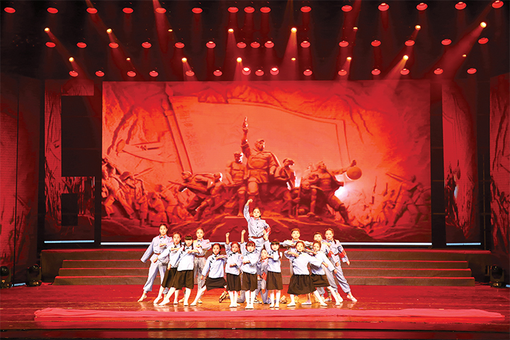 活動中,學生們用童心演繹快樂,用多種形式的節(jié)目傳遞心中的喜悅,為現(xiàn)場觀眾獻上了一場精彩的文藝演出。現(xiàn)場,雄壯嘹亮的音舞劇《留莊的故事》,聲情并茂的情景劇《不忘初心 童心向黨》,活潑可愛的《紅孩子》以及歌舞組合《海防前哨》等節(jié)目贏得了觀眾的陣陣掌聲。壓軸的綜藝表演《共產主義接班人》更是贏得了全場喝彩聲。
