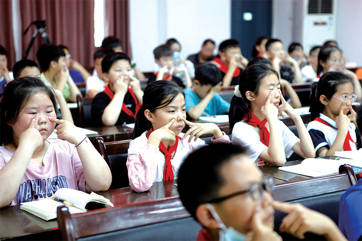 做眼保健操 劉培琳 攝
