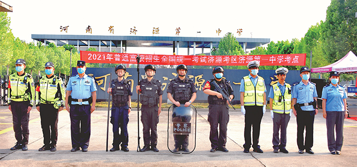 高考期間,他們分散在我市的4個考點,為守護高考全力以赴,保障考生順利考試。(圖片由王經(jīng)杰、賈書琛、趙璐瑤 攝)