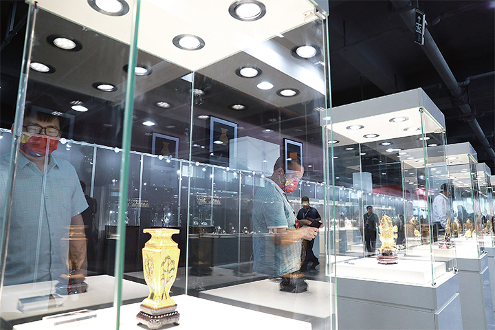 6月23日,市民在首屆濟源白銀文化節(jié)師古創(chuàng)今·“銀”領未來——工匠精神發(fā)展論壇暨大師精品展展廳拍攝展品。