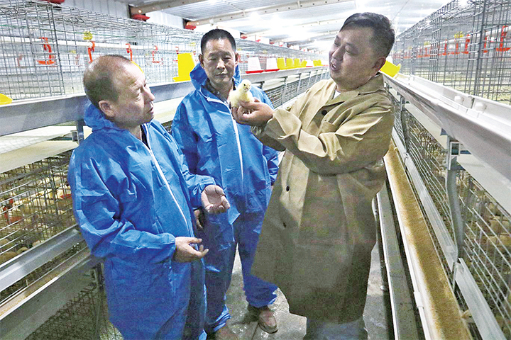 6月10日,王屋鎮(zhèn)西門村肉雞養(yǎng)殖合作社里,示范區(qū)農(nóng)業(yè)農(nóng)村局技術(shù)人員查看雞苗生長情況。
