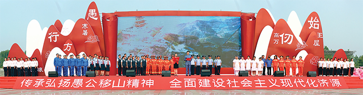 據(jù)了解,此次活動分為兩個環(huán)節(jié),近千名演職人員通過《黃河岸邊是我家》《愚公移山》《汗水鑄就小康夢》《愚公移山精神·頌歌》《再一次出發(fā)》等精彩節(jié)目,用歌舞、朗誦的藝術(shù)形式,演繹了愚公移山精神在濟(jì)源的傳承和弘揚(yáng)。