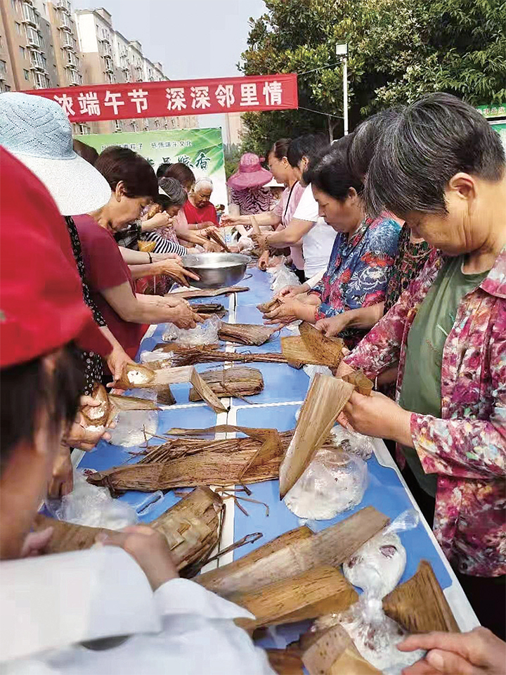 國泰花園的居民自發(fā)組織包粽子。王同續(xù) 孔新哲 攝