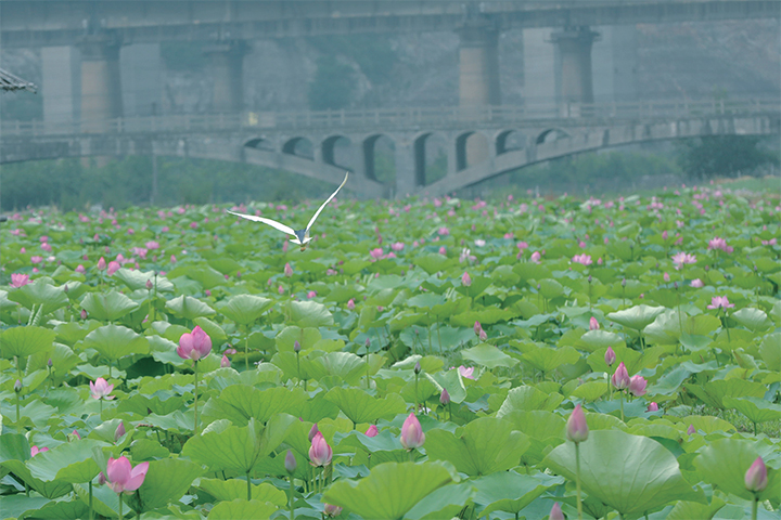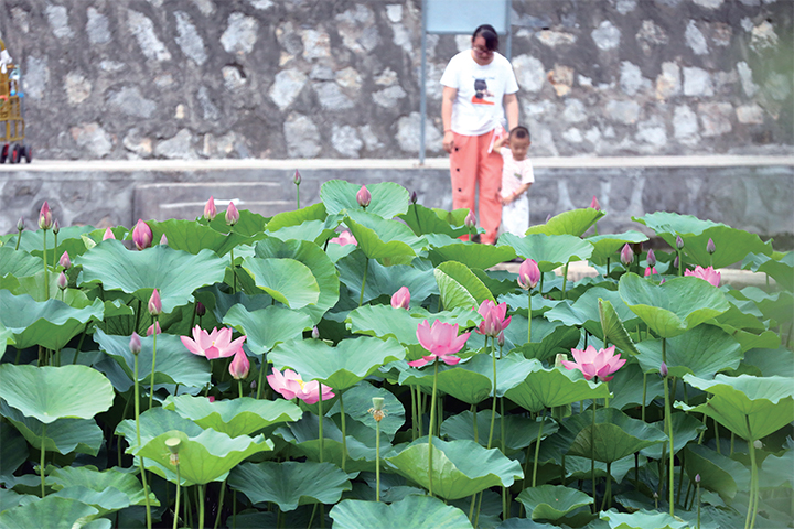 6月15日,記者走訪發(fā)現(xiàn),清趣園、蟒河河道以及五龍口鎮(zhèn)省莊的荷塘內(nèi),荷花已經(jīng)次第開放,時常吸引路人拍照留念。