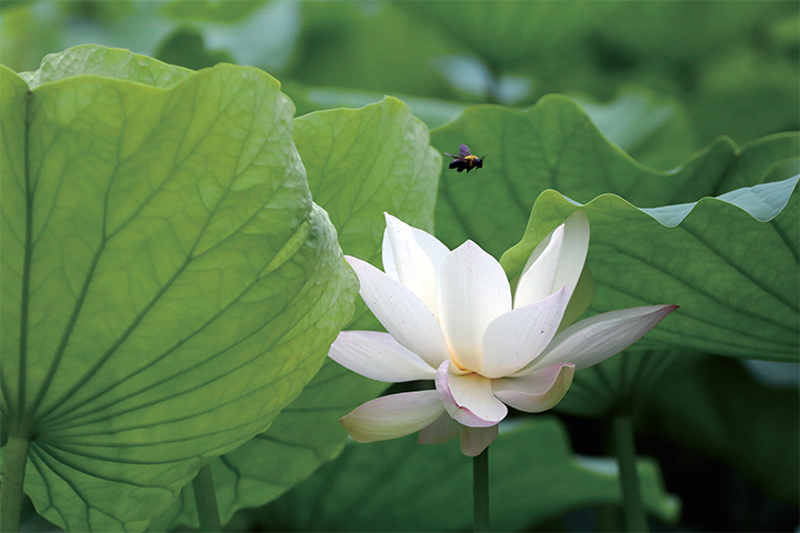 “風(fēng)蒲獵獵小池塘,過雨荷花滿院香。”進入6月以來,荷塘里的荷花有的已悄然綻放,有的正含苞待放。正如《荷塘月色》中所言:“曲曲折折的荷塘上面,彌望的是田田的葉子。葉子出水很高,像亭亭的舞女的裙。層層的葉子中間,零星地點綴著些白花,有裊娜地開著的,有羞澀地打著朵兒的……”