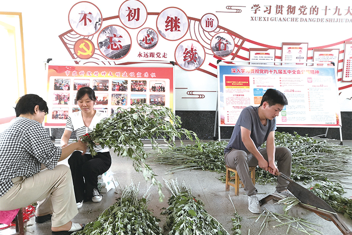 6月15日,在示范區(qū)農(nóng)科院種質(zhì)資源圃與品種(品系)示范基地里,科技人員正在采收艾草資源,并對(duì)不同生態(tài)類型的艾草品系(種)進(jìn)行形態(tài)學(xué)標(biāo)記。
