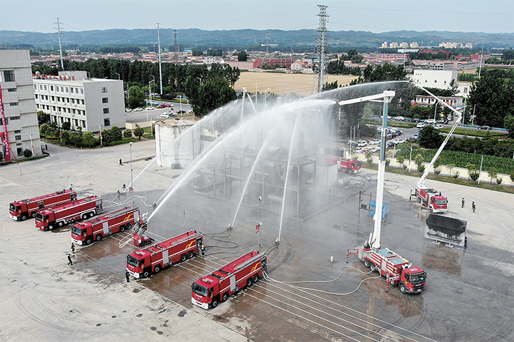 濟源市消防救援支隊進行模擬化工裝置火災(zāi)應(yīng)急救援展演