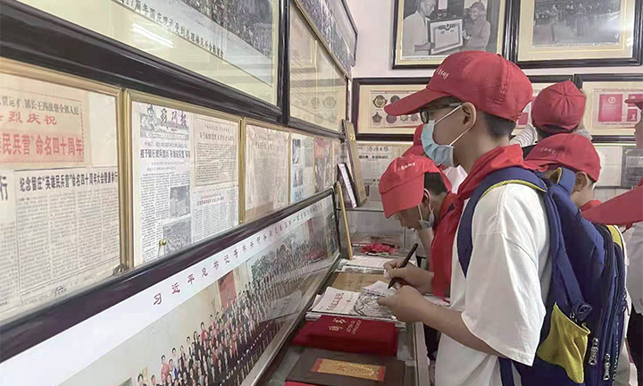 學(xué)生們在薛平華家庭黨史教育展館內(nèi)參觀學(xué)習(xí)