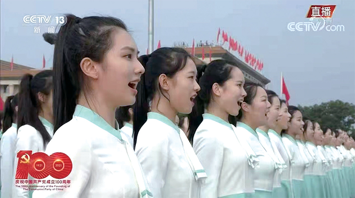 提起大會,宋子晨仍然心潮澎湃?!爱?dāng)踏上廣場紅毯時,我的內(nèi)心肅然起敬。在現(xiàn)場,我親眼看到了殲20從我的頭頂飛過,看到了三軍儀仗隊的英姿颯爽,真真切切地看到了習(xí)近平總書記就站在距離我們不遠(yuǎn)的城樓上發(fā)表重要講話……”她感慨,能夠站在天安門廣場上,用歌聲慶祝中國共產(chǎn)黨百年華誕是自己畢生的榮光。