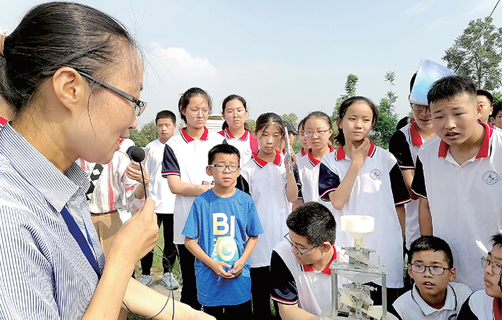 7月6日,濟(jì)水一中七(9)班學(xué)生在老師的帶領(lǐng)下走進(jìn)濟(jì)源氣象局,參觀氣象科普園。