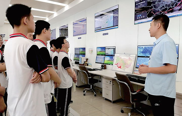 在氣象綜合業(yè)務(wù)平臺內(nèi),學(xué)生們了解了雷電、雷達(dá)、區(qū)域站、遙感雨量、空氣質(zhì)量等監(jiān)測平臺是如何工作的。當(dāng)看到衛(wèi)星云圖監(jiān)測平臺時,學(xué)生們好奇地問:“它能監(jiān)測到宇宙飛船嗎?看著這些就能知道哪里會下雨、哪里會打雷嗎?”面對他們的提問,工作人員耐心解答,并告訴他們遇到雷電或暴雨天氣時該如何保護(hù)自己。