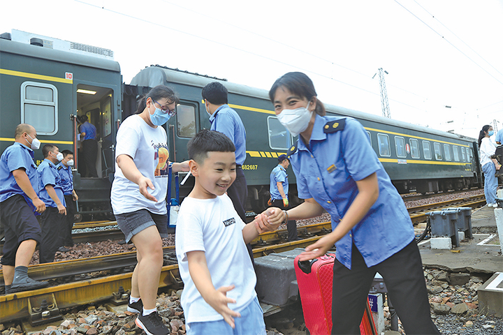 常云彬姐弟倆是第一批下車的。乘務(wù)員攙扶著每名旅客下車,跨過(guò)鐵軌,走上站臺(tái),一個(gè)、兩個(gè)……