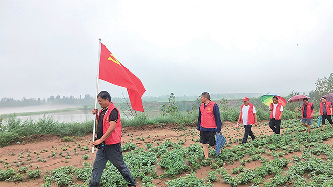 村干部沿河巡查。