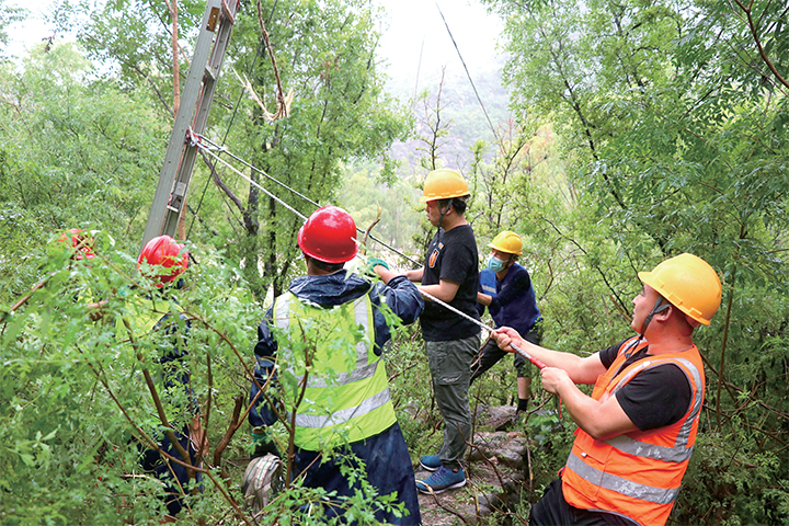 為保證受災(zāi)嚴(yán)重區(qū)域通信正常,為后續(xù)救災(zāi)隊(duì)伍提供最大程度的通信保障,濟(jì)源移動(dòng)、濟(jì)源聯(lián)通、濟(jì)源電信汛前及時(shí)做出應(yīng)急預(yù)案,網(wǎng)管人員24小時(shí)實(shí)時(shí)監(jiān)控,第一時(shí)間出動(dòng)人力物資成立搶修隊(duì)伍,線路維護(hù)人員翻山越嶺搶修高山基站和沿途線路。他們肩扛背馱運(yùn)輸光纜,爭(zhēng)分奪秒堅(jiān)守一線,全力以赴守衛(wèi)通信“生命線”。